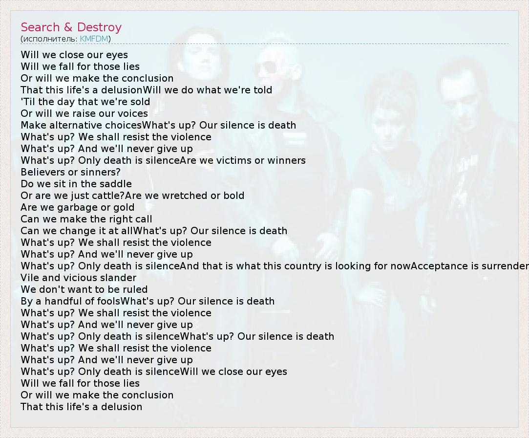 А как ты думаешь, о чем песня "Search & Destroy" ?