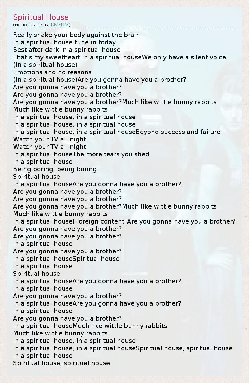 А как ты думаешь, о чем песня "Spiritual House" ?