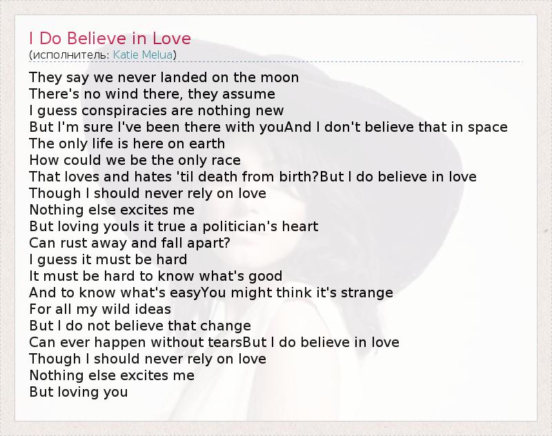 А как ты думаешь, о чем песня "I Do Believe in Love" ?