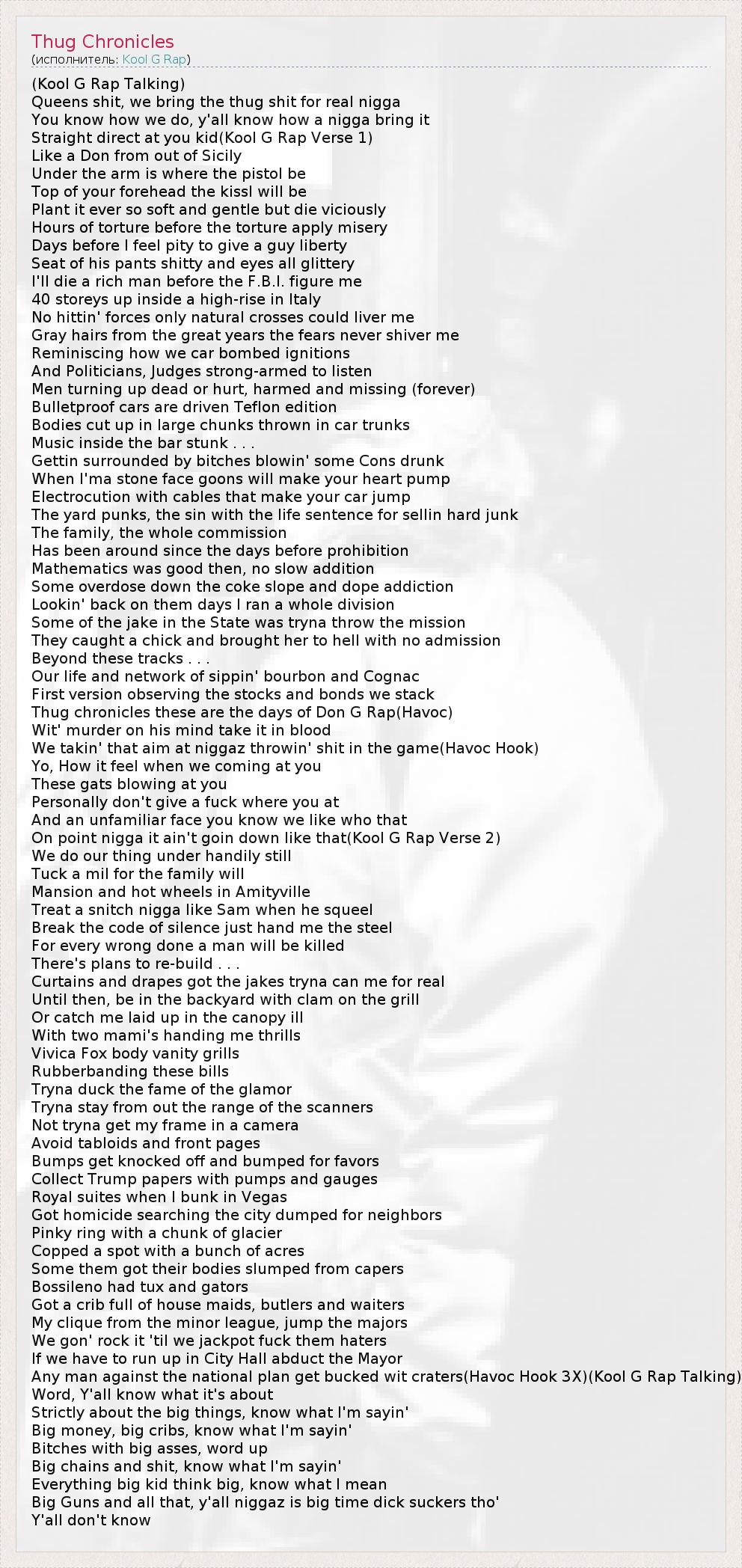 Thug chronicles these are the days of Don G Rap(Havoc)