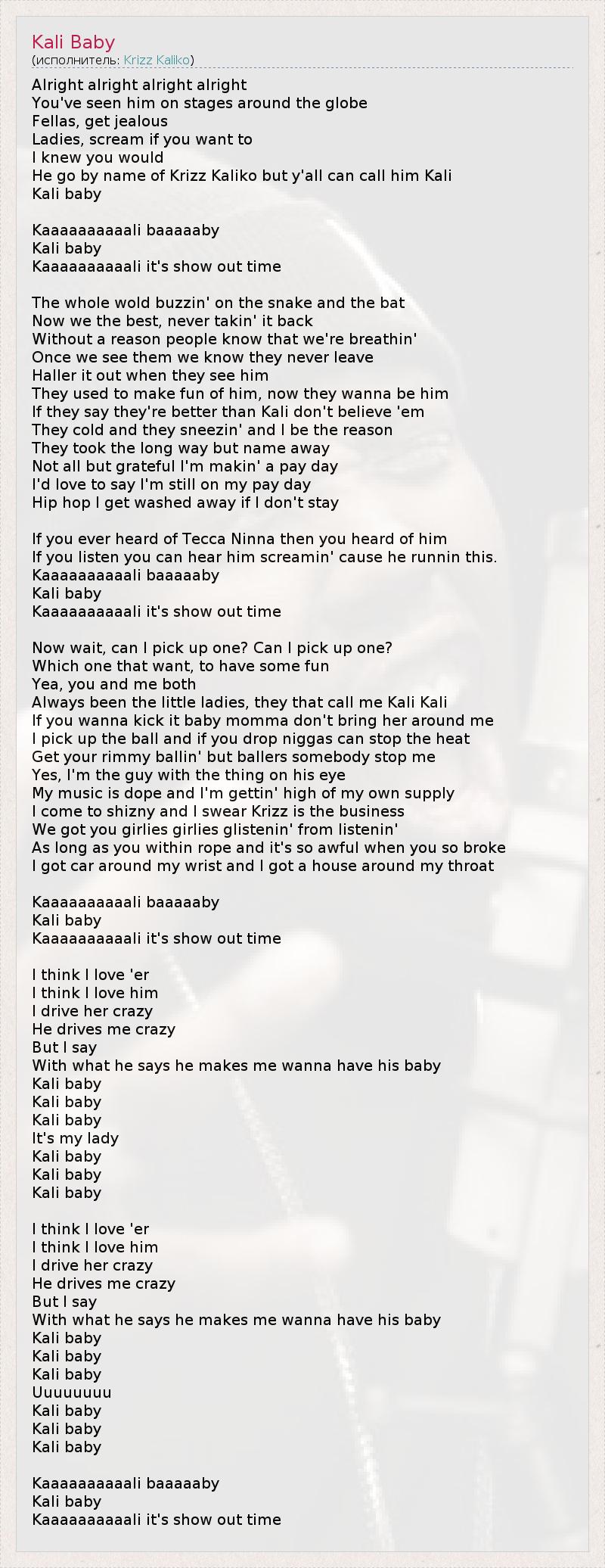 А как ты думаешь, о чем песня "Kali Baby" ?