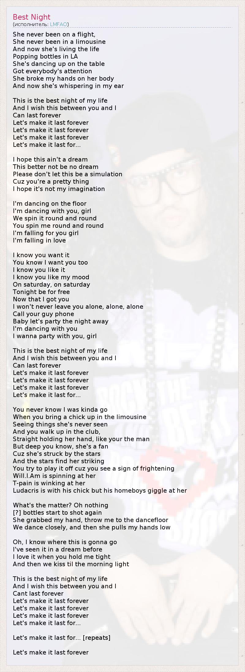 Sorry For Party Rocking длится час, но гонять пластинку можно много раз подряд, главное, чтобы ноги не подкосились от плясок. Смачные басовые партии и электроные биты могут довести до полного изнеможения, а бодрые речетативные вставки то от Стефана, то от Горди не дают расслабиться ни на секунду. Да, треки не блещут новизной и не поражают воображение заоблачным уровнем исполнения. Зато все это компенсирует атмосфера музыки и настрой самих музыкантов, которым под силу зажечь огромную толпу. После таких дисков даже не сомневаешься, что парни вроде тех, что играют в LMFAO тусят так семь ночей в неделю. Если и была какая-то неуверенность или недосказанность на их первом альбоме, то за два года все они куда-то испарились. На Sorry For Party Rocking к слушателю прибывает опасный груз, готовый взорваться в любую минуту, и это как раз то, что так надо. В Лос-Анджелесе, откуда родом эта веселая парочка, может быть, вообще иного образа жизни не признают, а в остальном мире для того, чтобы праздник души состоялся должным образом порой именно таких дисков и не хватает.