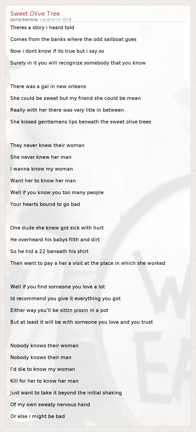 А как ты думаешь, о чем песня "Sweet Olive Tree" ?