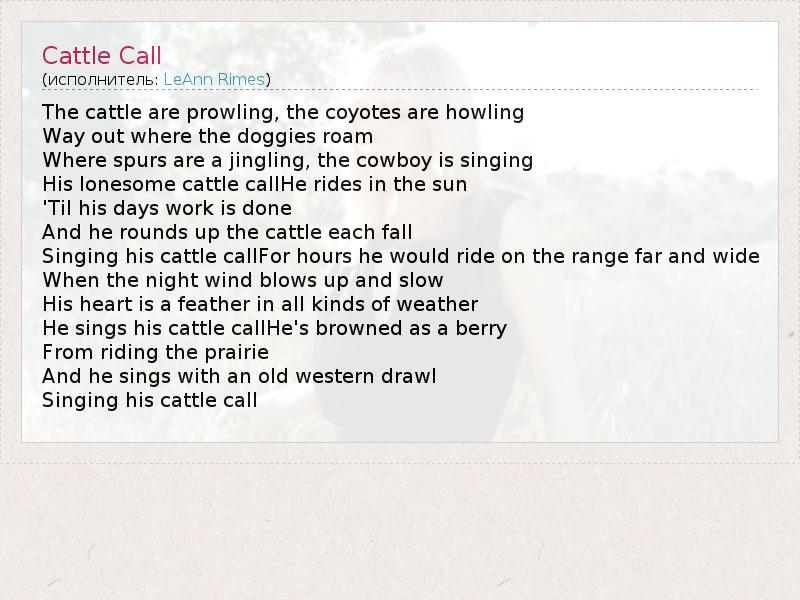 А как ты думаешь, о чем песня "Cattle Call" ?
