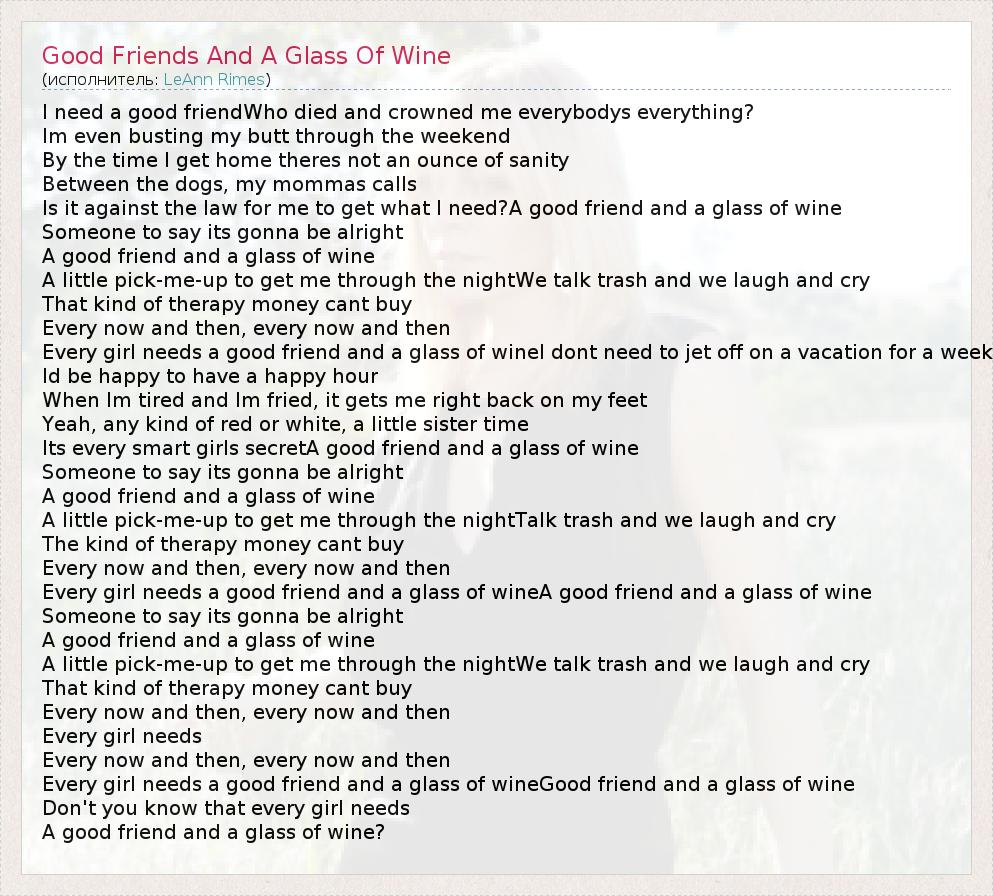 ГлавнаяИсполнителиLeAnn RimesGood Friends And A Glass Of Wine
