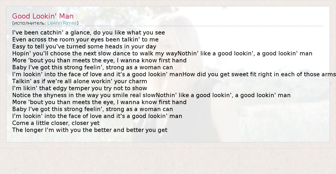 А как ты думаешь, о чем песня "Good Lookin' Man" ?