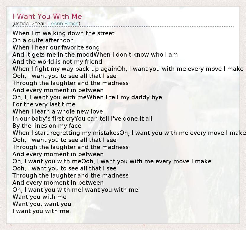 А как ты думаешь, о чем песня "I Want You With Me" ?