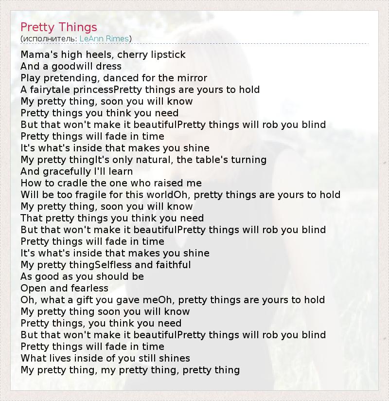 А как ты думаешь, о чем песня "Pretty Things" ?