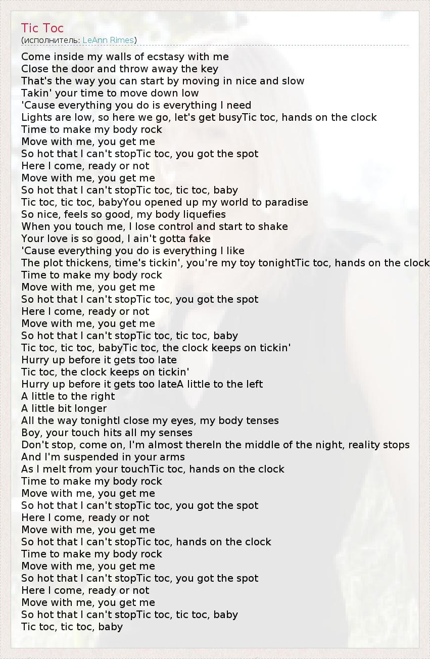 А как ты думаешь, о чем песня "Tic Toc" ?