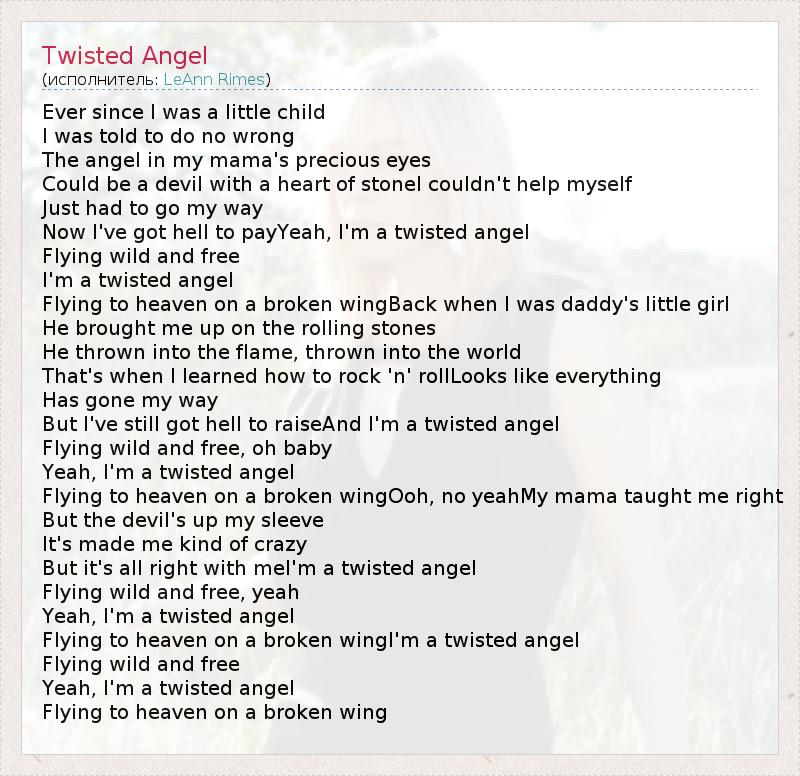 Flying to heaven on a broken wingI'm a twisted angel