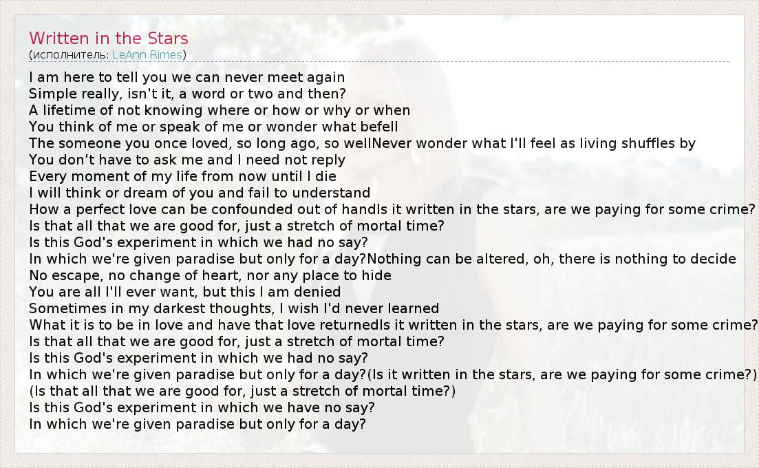 А как ты думаешь, о чем песня "Written in the Stars" ?