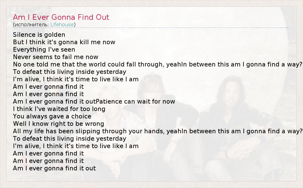 А как ты думаешь, о чем песня "Am I Ever Gonna Find Out" ?