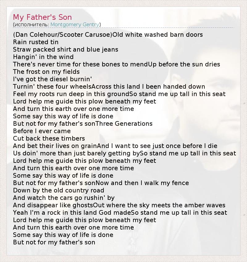 А как ты думаешь, о чем песня "My Father's Son" ?
