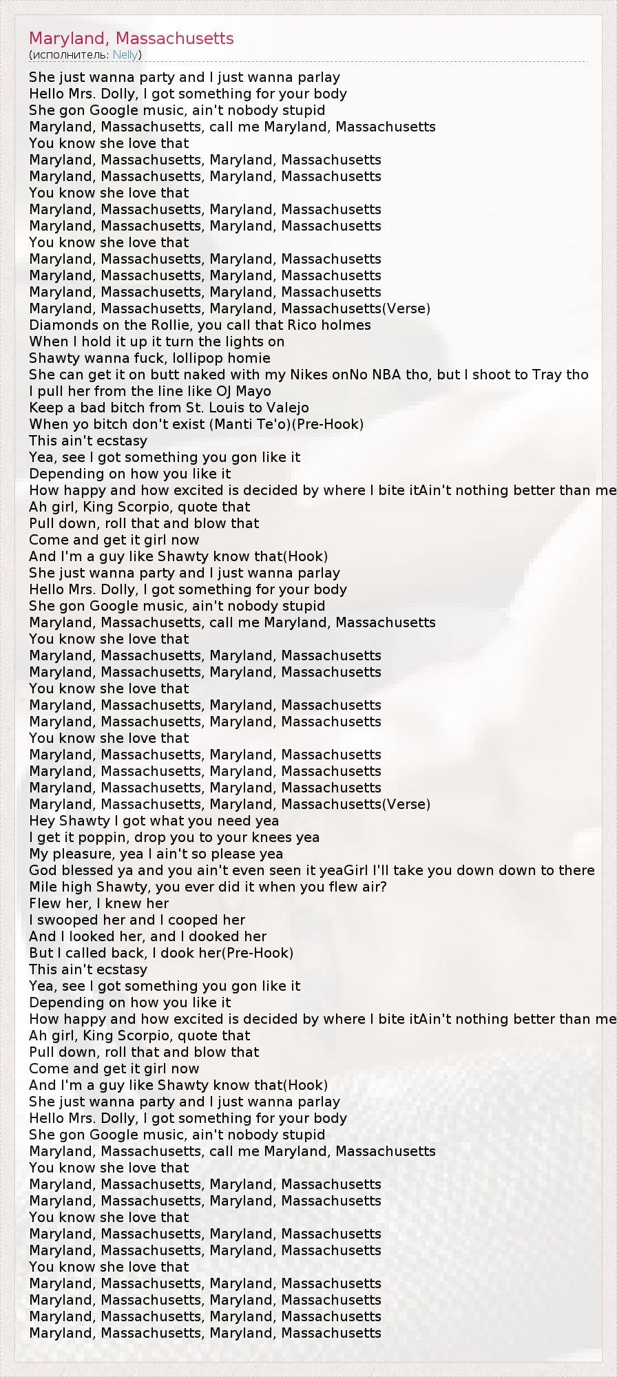 ГлавнаяИсполнителиNellyMaryland, Massachusetts