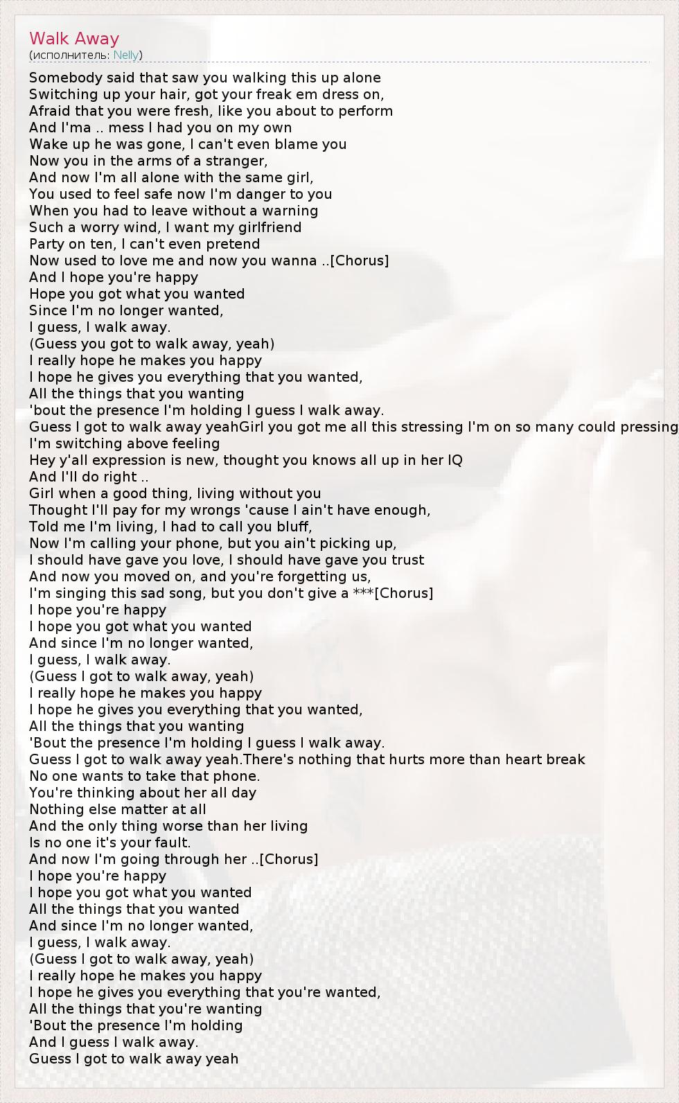 А как ты думаешь, о чем песня "Walk Away" ?