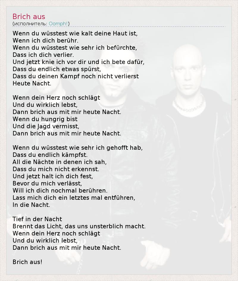 А как ты думаешь, о чем песня "Brich aus" ?