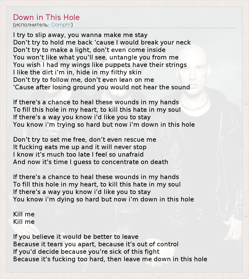А как ты думаешь, о чем песня "Down in This Hole" ?