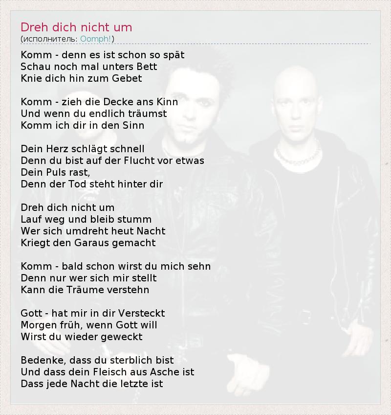 А как ты думаешь, о чем песня "Dreh dich nicht um" ?