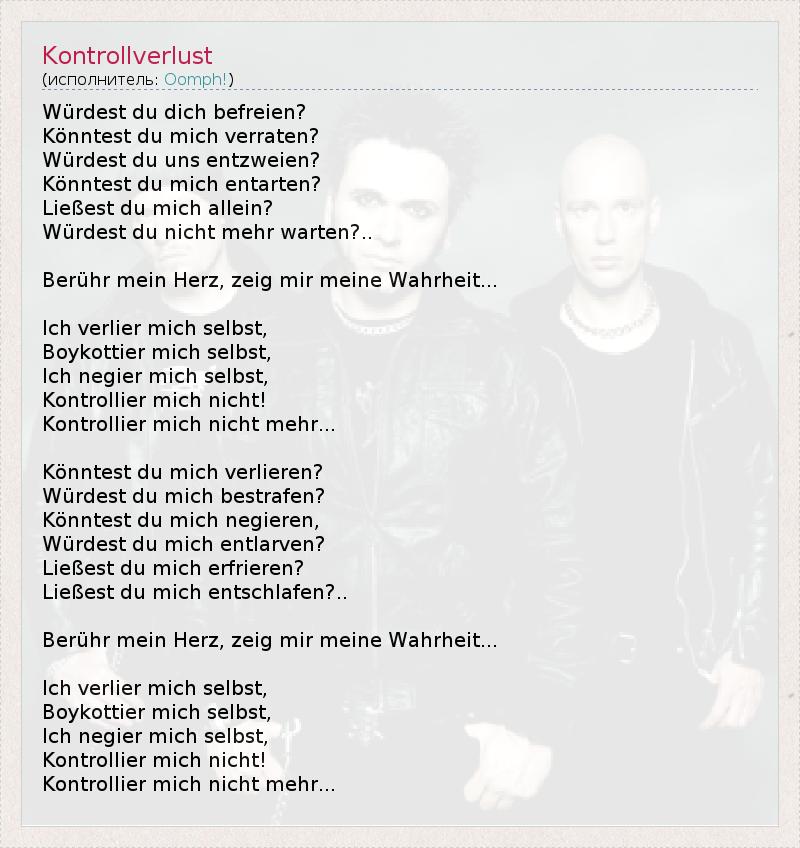 А как ты думаешь, о чем песня "Kontrollverlust" ?