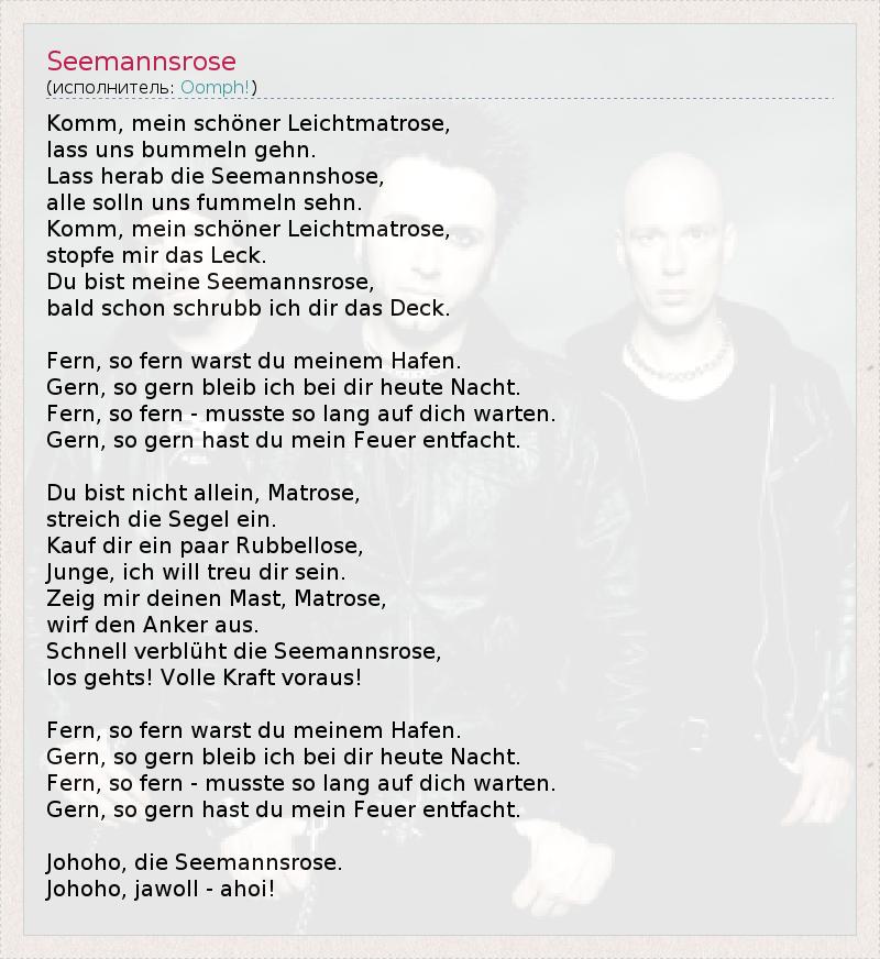 А как ты думаешь, о чем песня "Seemannsrose" ?