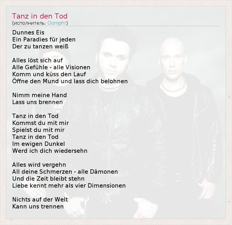 А как ты думаешь, о чем песня "Tanz in den Tod" ?