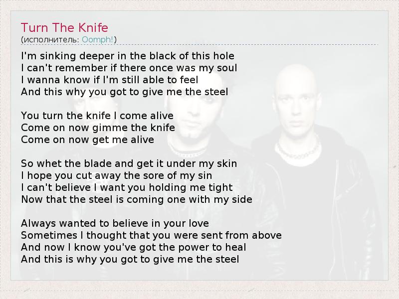 А как ты думаешь, о чем песня "Turn The Knife" ?