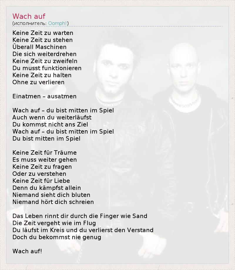Это интересно:Постоянное движение вперед, полная самоотдача и великолепное звучание — всё это свойственно Oomph!. В течение 25-ти лет музыкальные произведения этого трио из Нижней Саксонии были сформированы их духом первооткрывательства. Критики, фэны и коллеги единодушно говорят, что эти три парня занимают место среди «самых революционных фигур немецкой музыкальной сцены». Rammstein... продолжение
