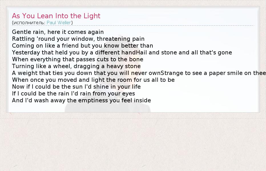 ГлавнаяИсполнителиPaul WellerAs You Lean Into the Light