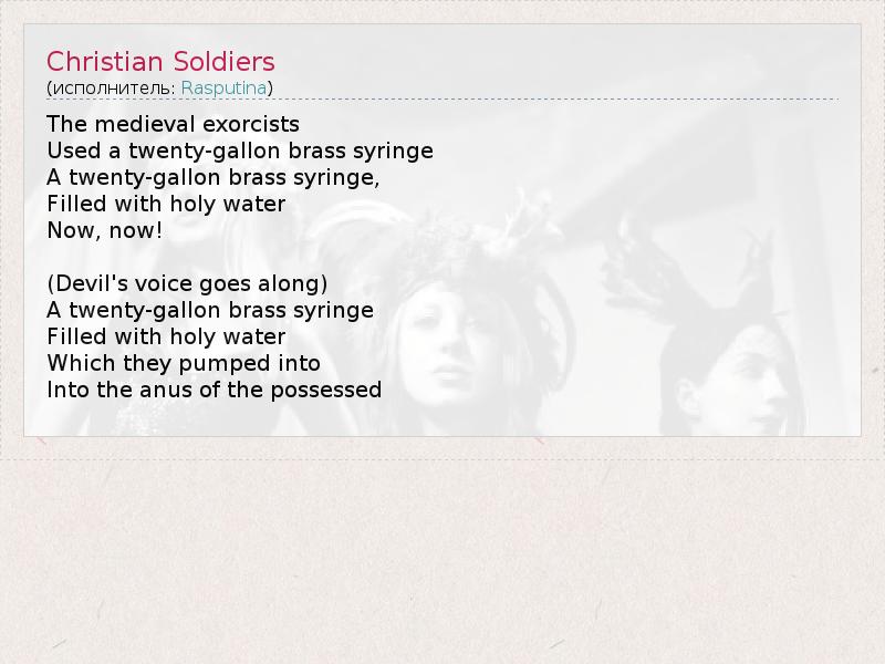 А как ты думаешь, о чем песня "Christian Soldiers" ?