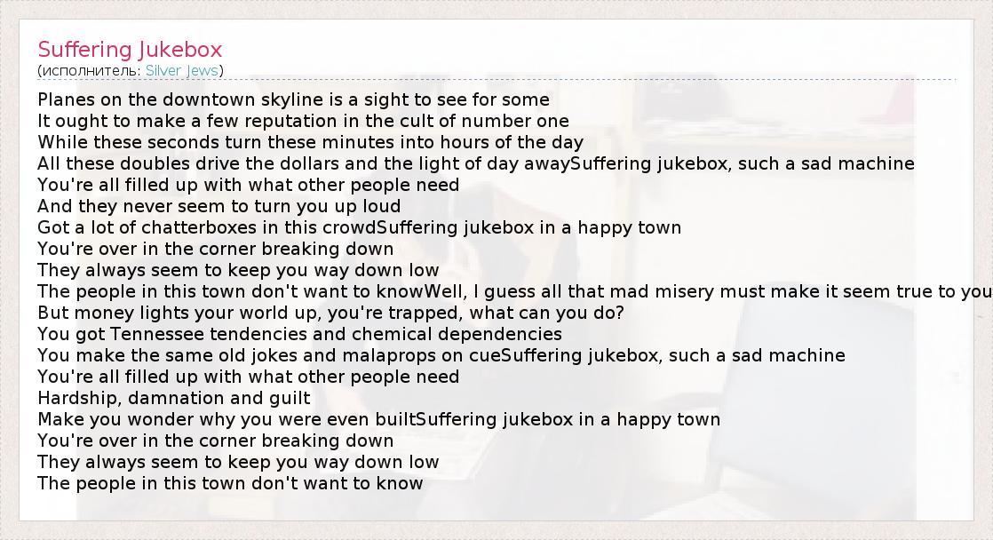 А как ты думаешь, о чем песня "Suffering Jukebox" ?