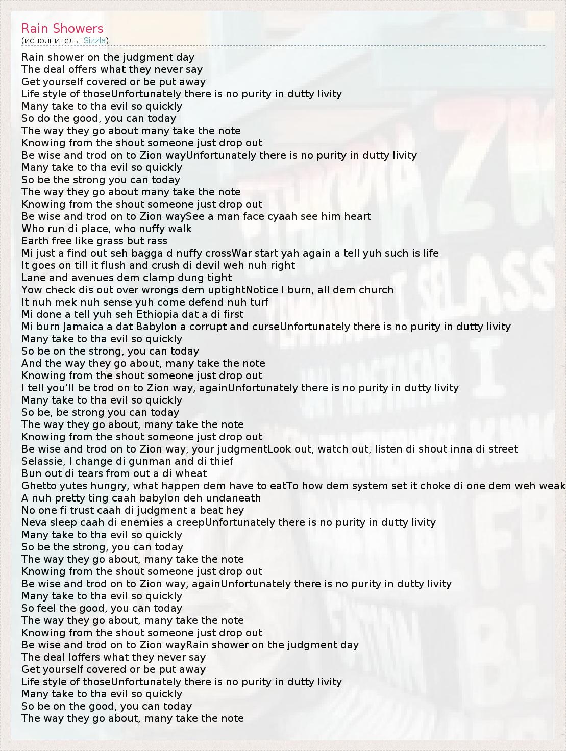 А как ты думаешь, о чем песня "Rain Showers" ?