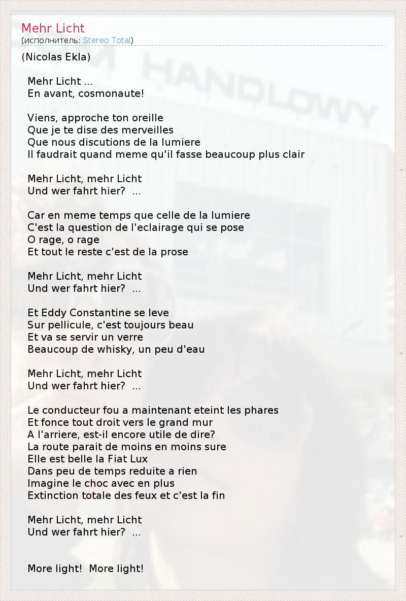 А как ты думаешь, о чем песня "Mehr Licht" ?