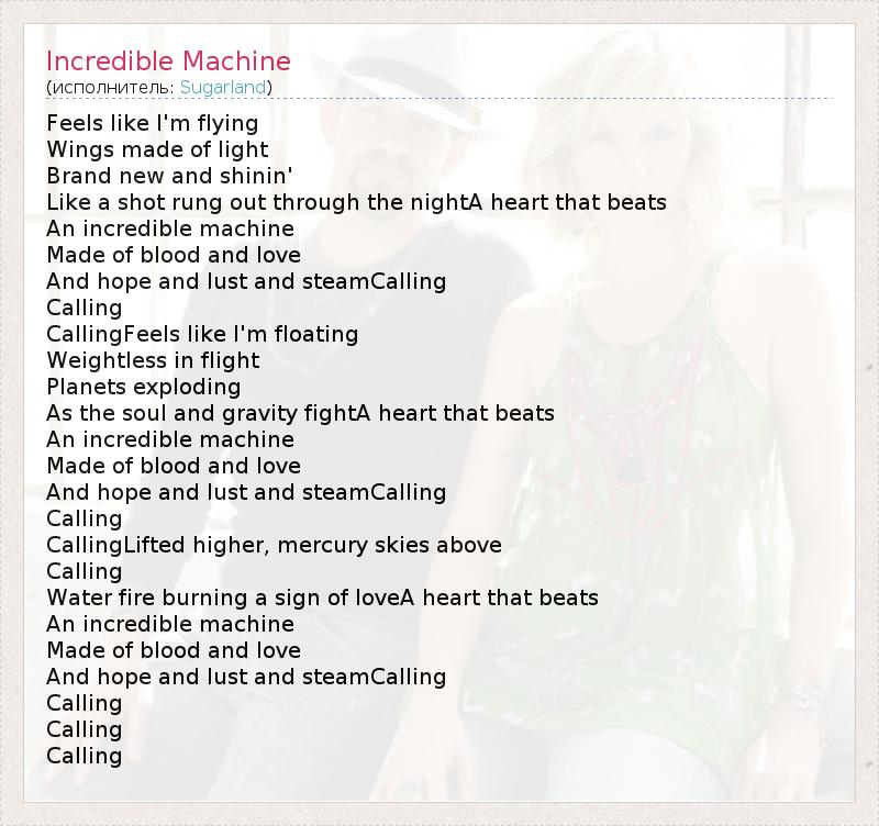 А как ты думаешь, о чем песня "Incredible Machine" ?