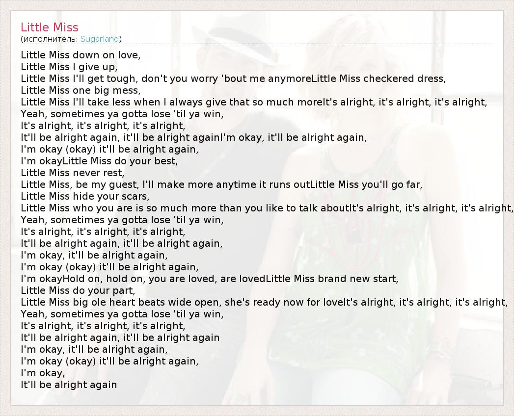 А как ты думаешь, о чем песня "Little Miss" ?