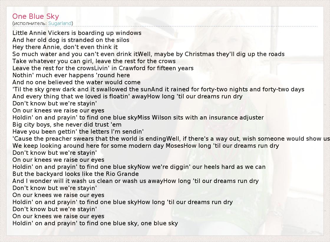 А как ты думаешь, о чем песня "One Blue Sky" ?
