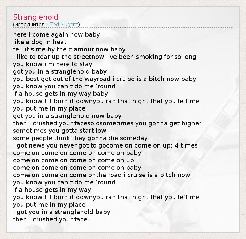 А как ты думаешь, о чем песня "Stranglehold" ?