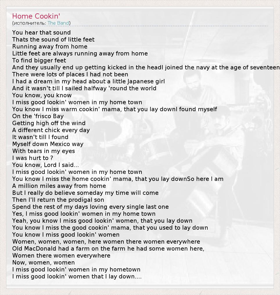 А как ты думаешь, о чем песня "Home Cookin'" ?
