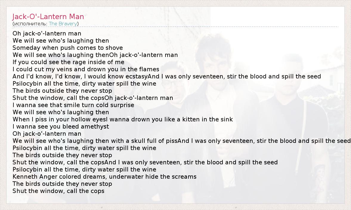 А как ты думаешь, о чем песня "Jack-O'-Lantern Man" ?