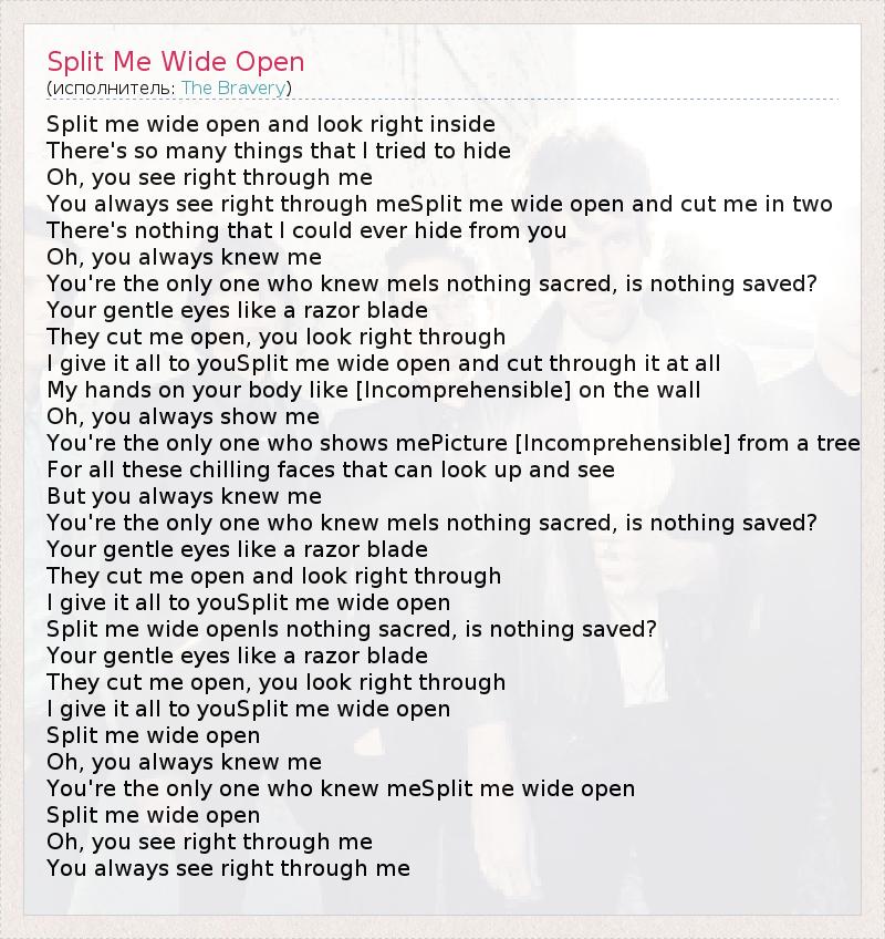 А как ты думаешь, о чем песня "Split Me Wide Open" ?