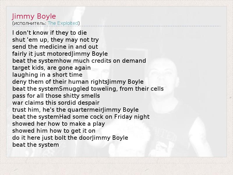 А как ты думаешь, о чем песня "Jimmy Boyle" ?