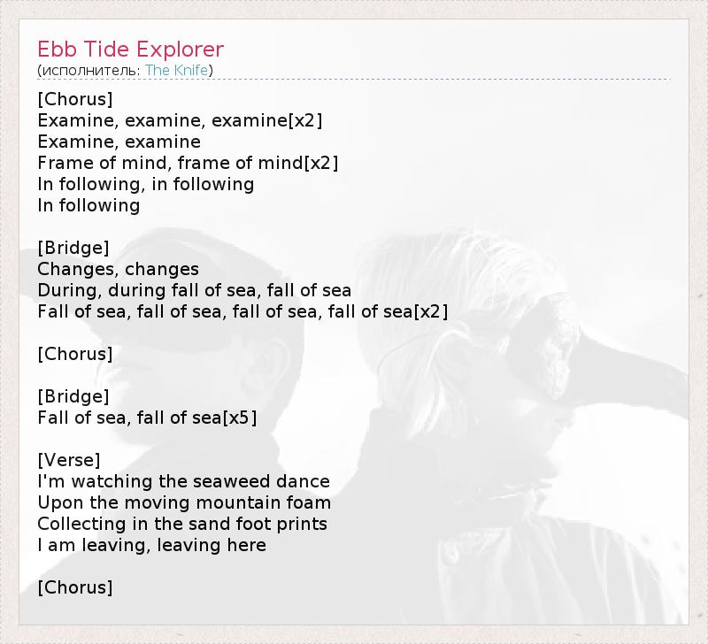 А как ты думаешь, о чем песня "Ebb Tide Explorer" ?