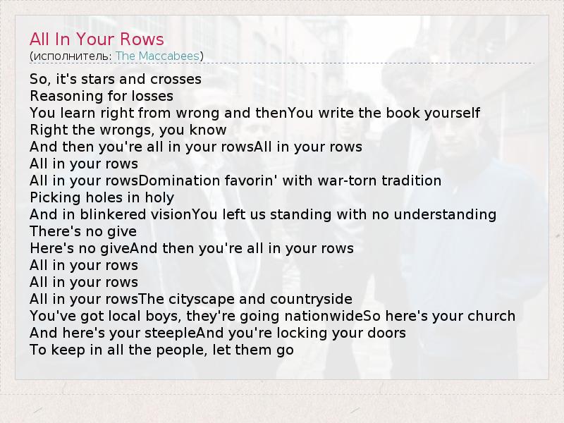 А как ты думаешь, о чем песня "All In Your Rows" ?