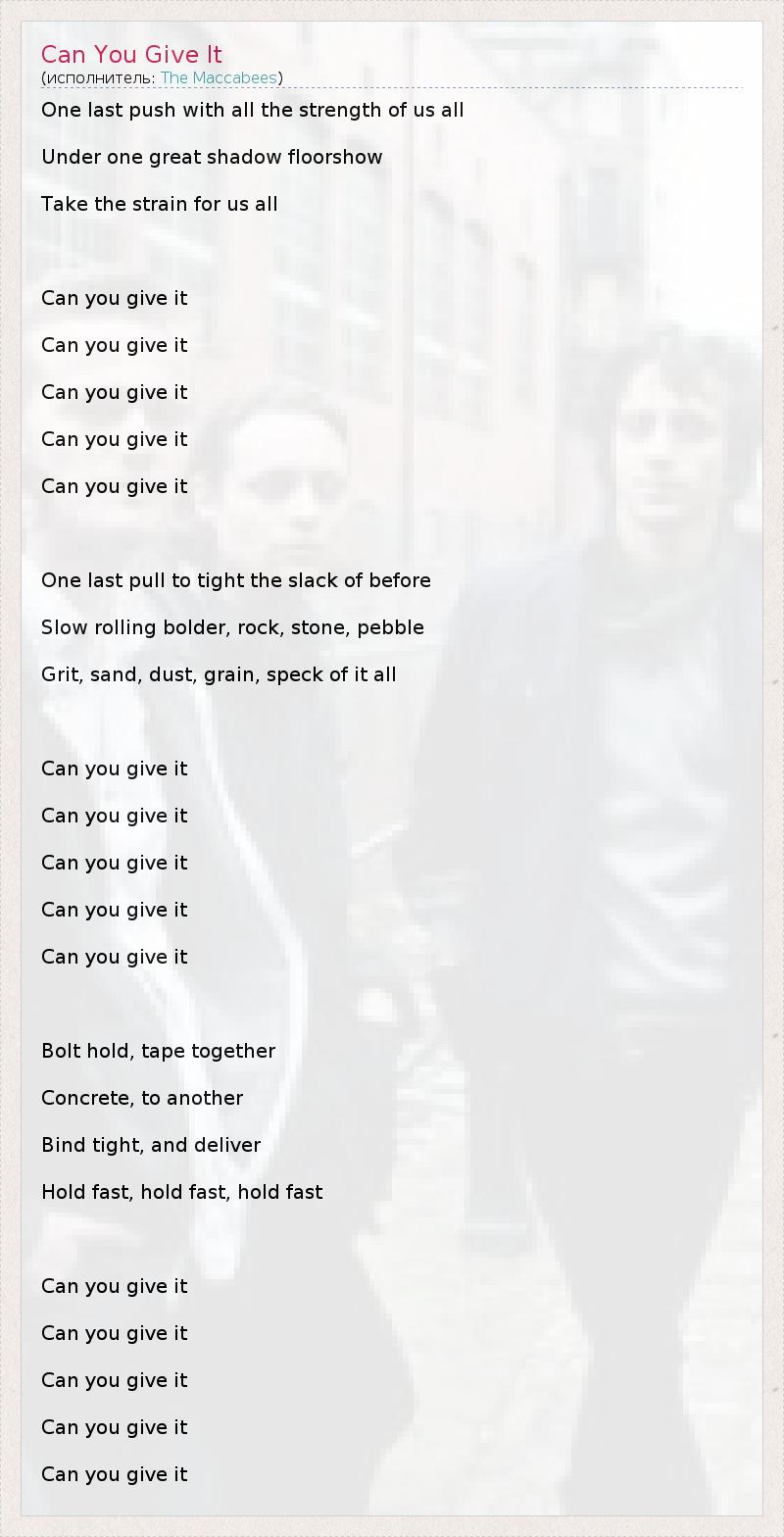 А как ты думаешь, о чем песня "Can You Give It" ?
