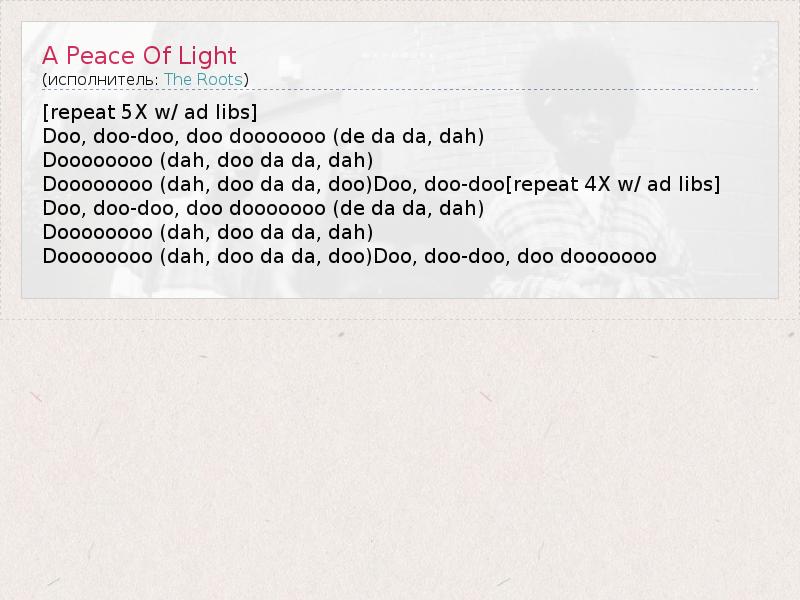 Doooooooo (dah, doo da da, doo)Doo, doo-doo[repeat 4X w/ ad libs]