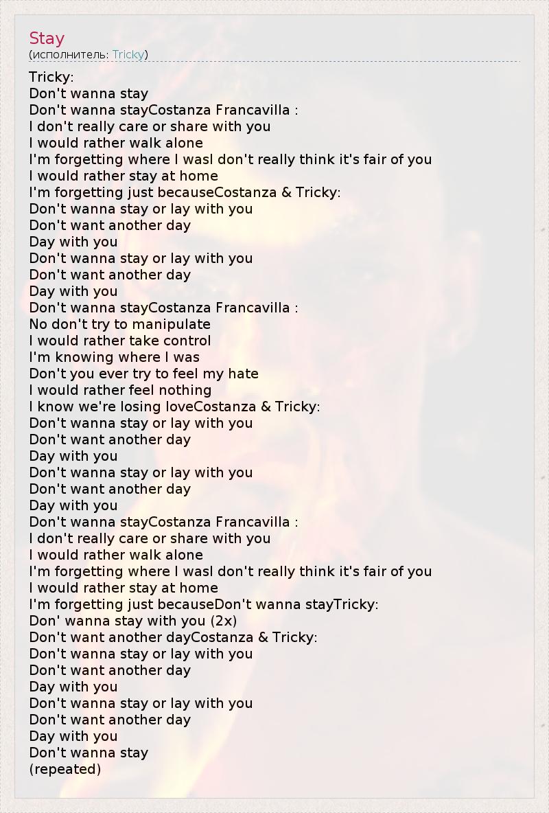 I'm forgetting just becauseDon't wanna stayTricky: