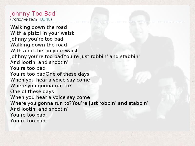 А как ты думаешь, о чем песня "Johnny Too Bad" ?