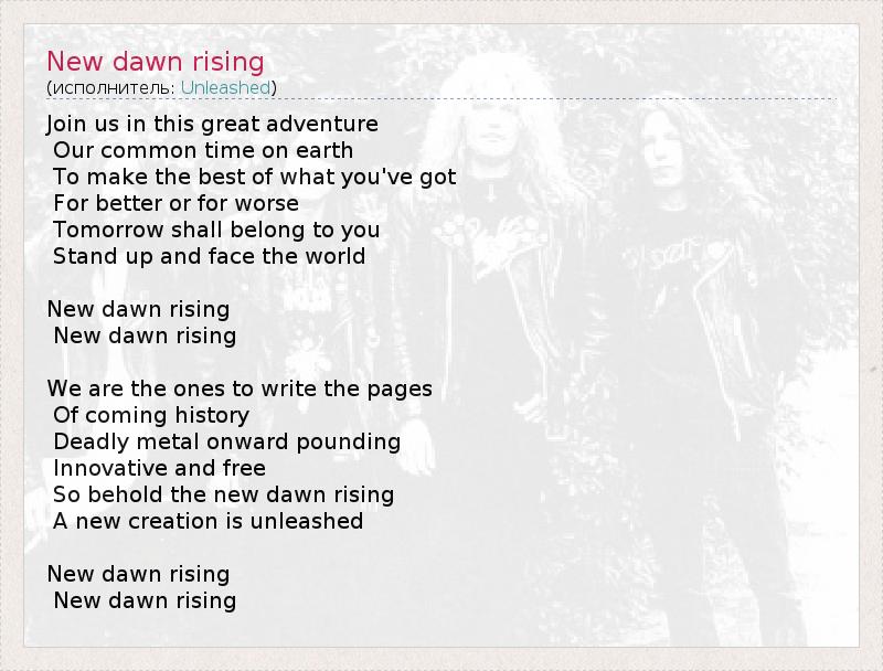 А как ты думаешь, о чем песня "New dawn rising" ?