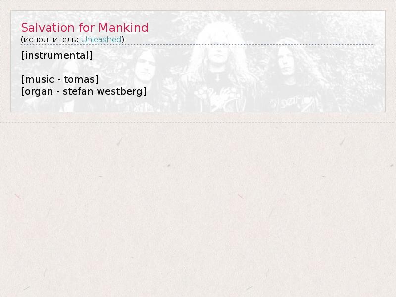 ГлавнаяИсполнителиUnleashedSalvation for Mankind