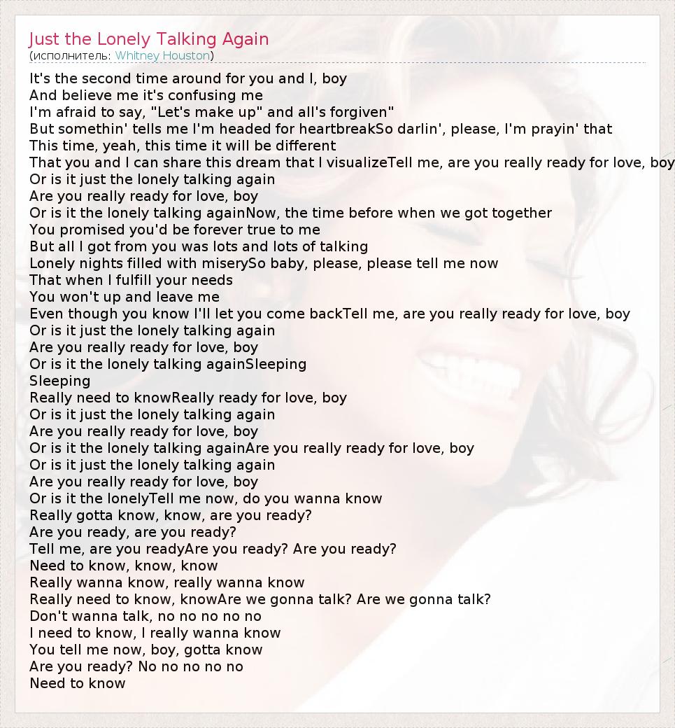 ГлавнаяИсполнителиWhitney HoustonJust the Lonely Talking Again