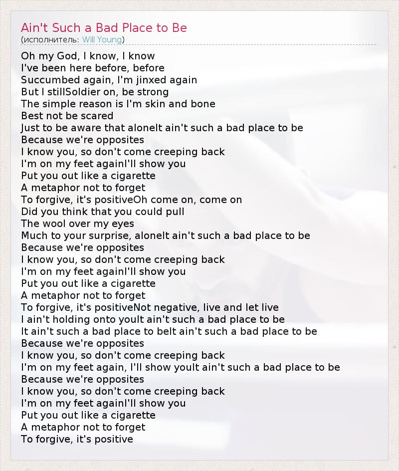 А как ты думаешь, о чем песня "Ain't Such a Bad Place to Be" ?